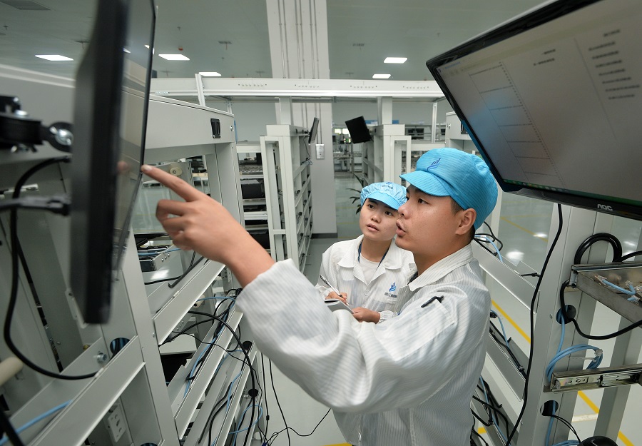 9月14日,湖南湘江新區(qū)湘江鯤鵬計(jì)算產(chǎn)業(yè)軟硬件生產(chǎn)線,工人在對(duì)PC機(jī)拷機(jī)進(jìn)行測(cè)試。目前,該生產(chǎn)車間的湖南自主品牌服務(wù)器和PC機(jī)的日產(chǎn)能分別達(dá)到300臺(tái)、1000臺(tái)。湖南日?qǐng)?bào)記者 李健 通訊員 王志宇 攝影報(bào)道