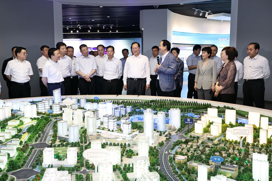 毛偉明一行在蘇州工業(yè)園區(qū)展示中心學(xué)習(xí)考察。