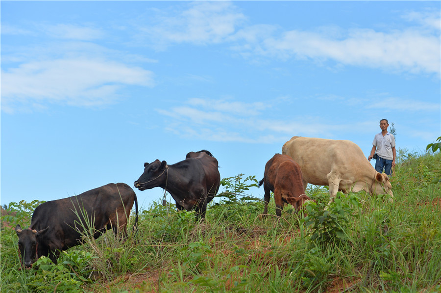 8月17日,邵陽(yáng)縣黃亭市鎮(zhèn)油斯村,村民吳順田在山上放牛。