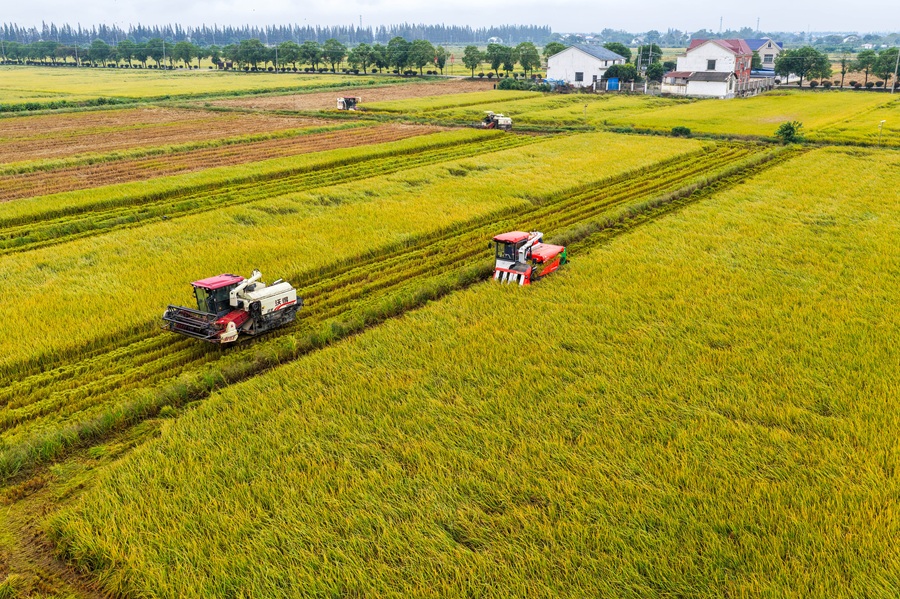 10月20日,位于洞庭湖畔的岳陽市屈原管理區(qū)鳳凰鄉(xiāng)河泊潭村,數(shù)十臺農機協(xié)同作戰(zhàn),完成稻谷收割、秸稈處理、土地翻耕和綠肥種植等全流程作業(yè),田間地頭一派繁忙的秋收景象。宋政軍 攝
