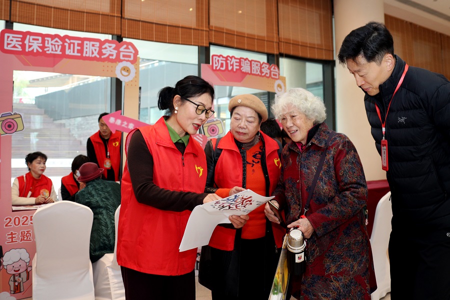 12月5日,金秋志愿者向老人普及反詐知識(shí),并幫助她們完成醫(yī)保線上認(rèn)證等便民操作。羅新國(guó) 攝