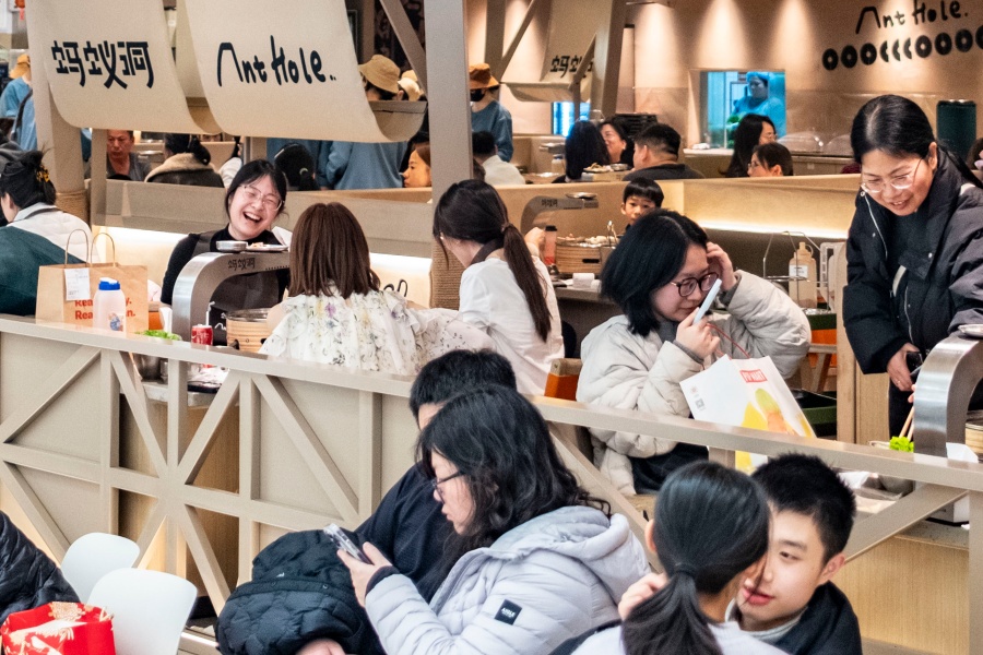 2月15日,湖南湘江新區(qū)一家購(gòu)物廣場(chǎng)內(nèi),市民在用餐。新春佳節(jié),長(zhǎng)沙市各大商圈圍繞“吃住行游購(gòu)?qiáng)省比湕l,推出多樣促消費(fèi)活動(dòng),為市民提供豐富的假期消費(fèi)體驗(yàn)。湖南日?qǐng)?bào)全媒體記者 童臻熙 攝