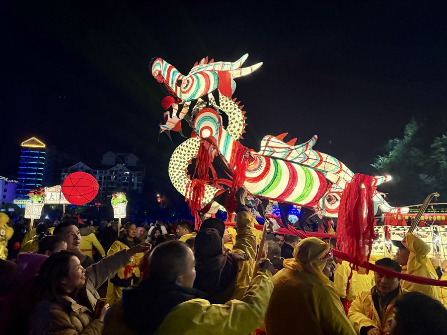 2月20日晚,通道侗族自治縣民族文化廣場鑼鼓齊鳴,金龍翻騰,為現(xiàn)場觀眾呈現(xiàn)了一場充滿侗族文化特色的新春民俗盛宴。陳俊宇 攝