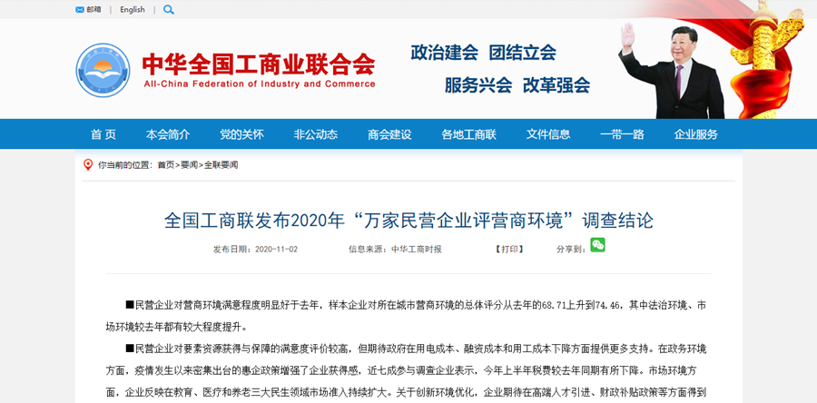 據全國工商聯發(fā)布的2020年“萬家民營企業(yè)評營商環(huán)境”調查結論,湖南入選營商環(huán)境最好的十個省份。