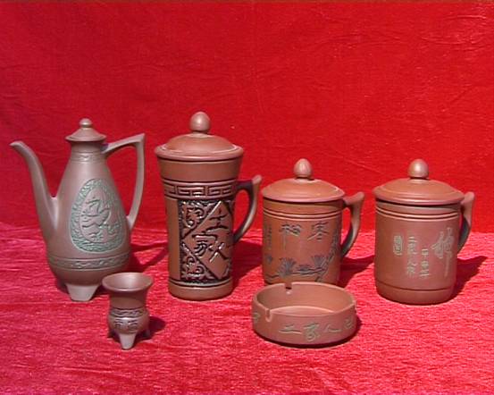 經(jīng)專家簽定,龍山紫砂陶,與在國(guó)際上聲譽(yù)很高的宜興紫砂陶含量一致,有極為珍貴的價(jià)值。1992年,陶瓷廠李云彬先生在保持陶瓷的原生性的基礎(chǔ)上,采用繪畫、雕刻等手法,集民族文化為一體的特色,研制創(chuàng)作了紫砂陶器《土家風(fēng)情尊》、《八頭茶具》、《紫砂茶水桶》3件作品,榮獲了湖南省輕工優(yōu)秀四新產(chǎn)品一等獎(jiǎng)。