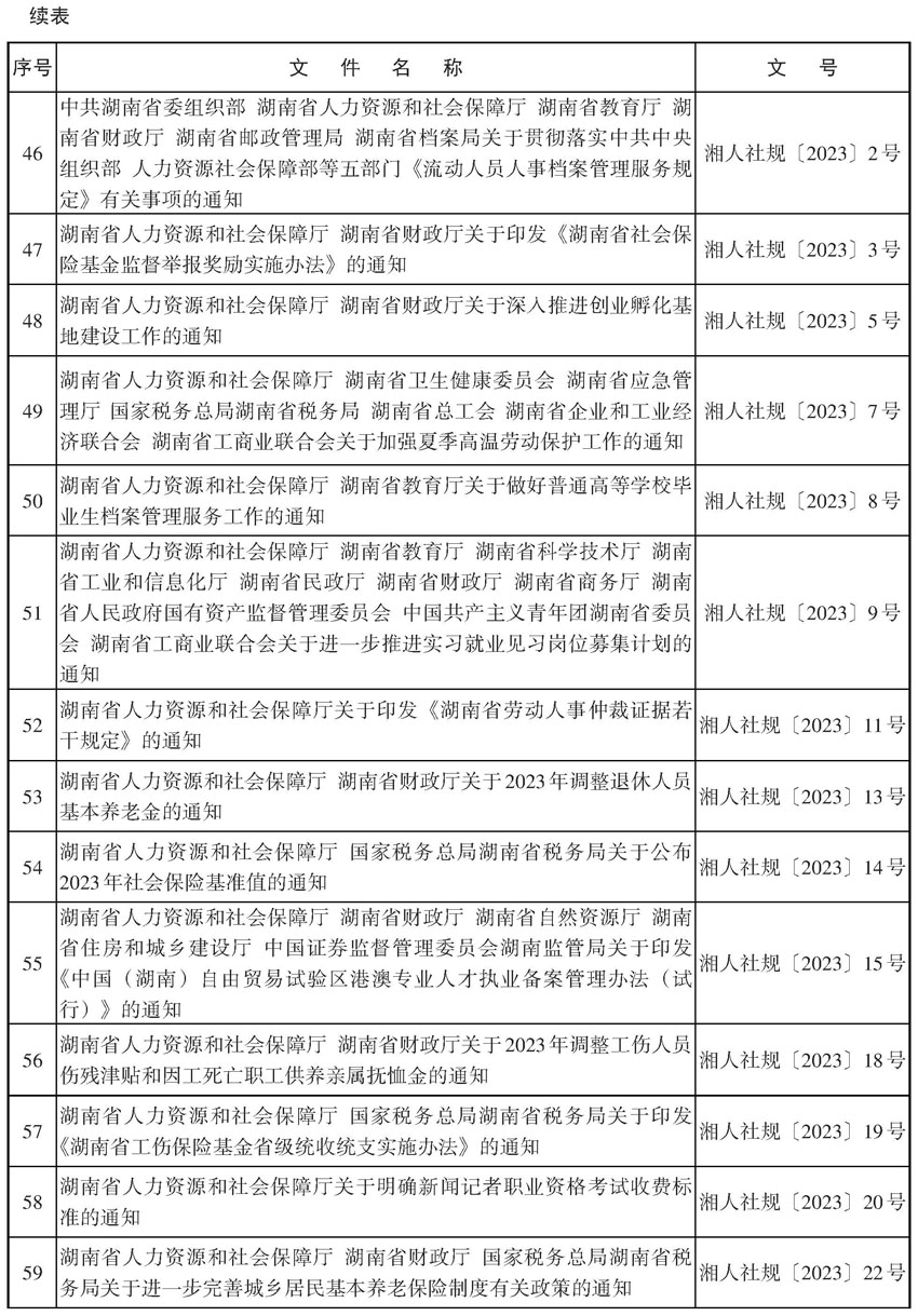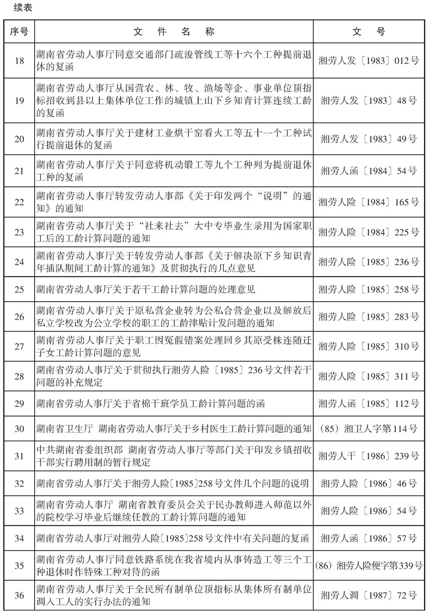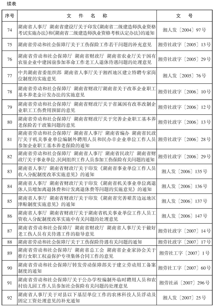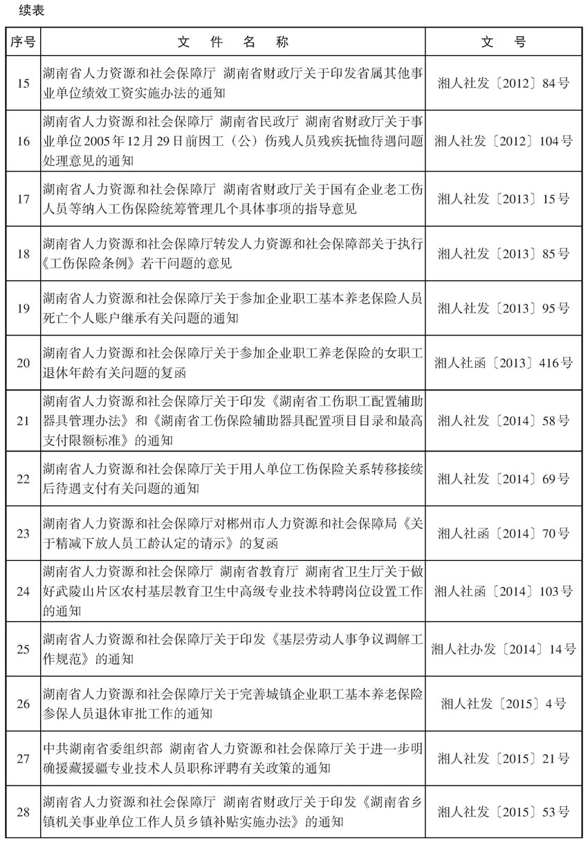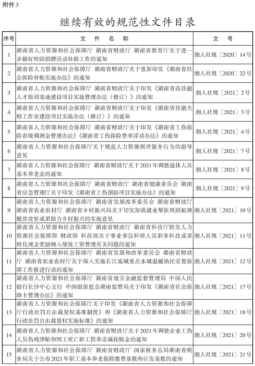 二、重新公布《湖南省勞動和社會保障廳關(guān)于按省人民政府辦公廳湘政辦發(fā)〔2009〕4號文件參保退休人員基本養(yǎng)老金計(jì)發(fā)問題的通知》等56件規(guī)范性文件。