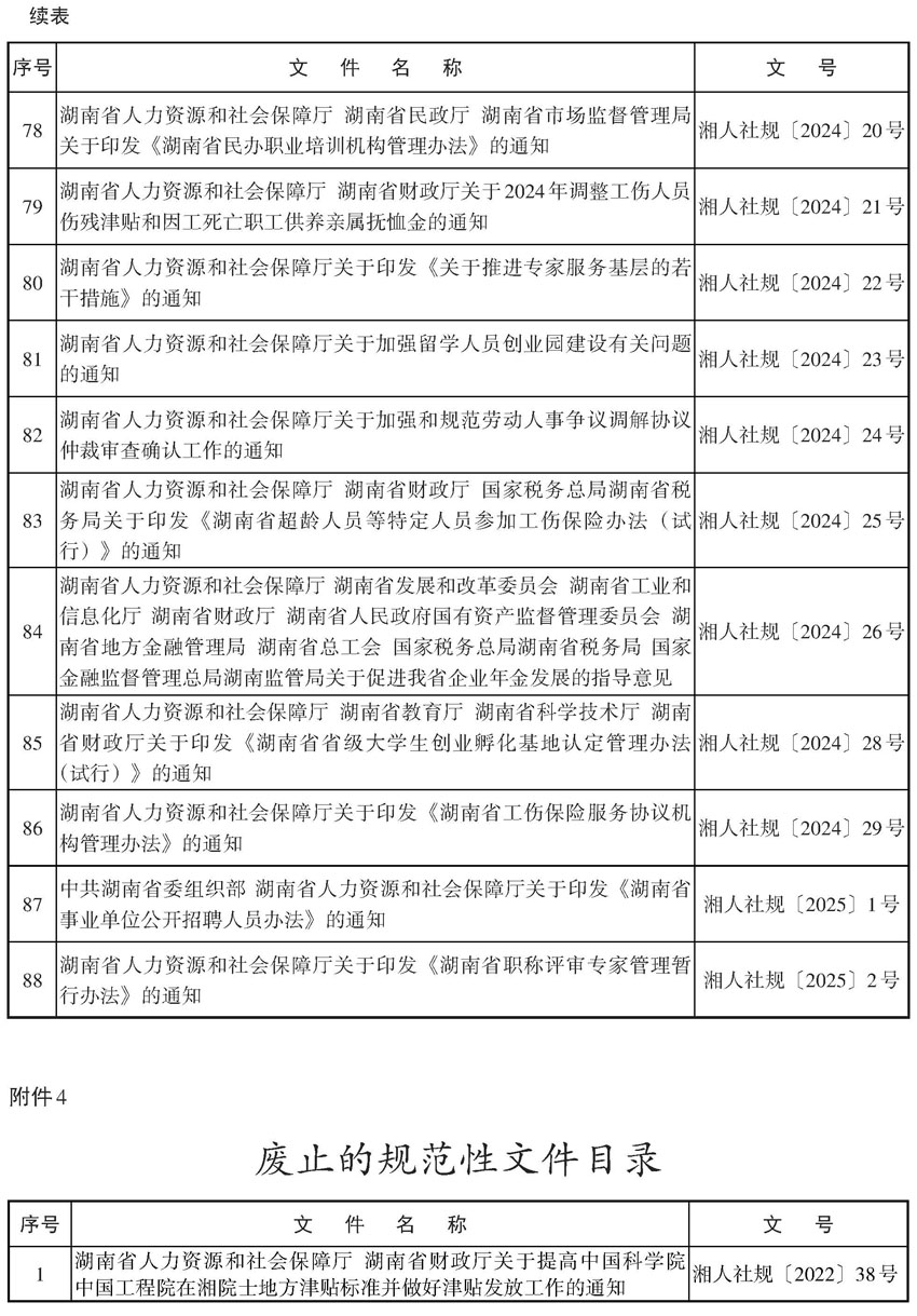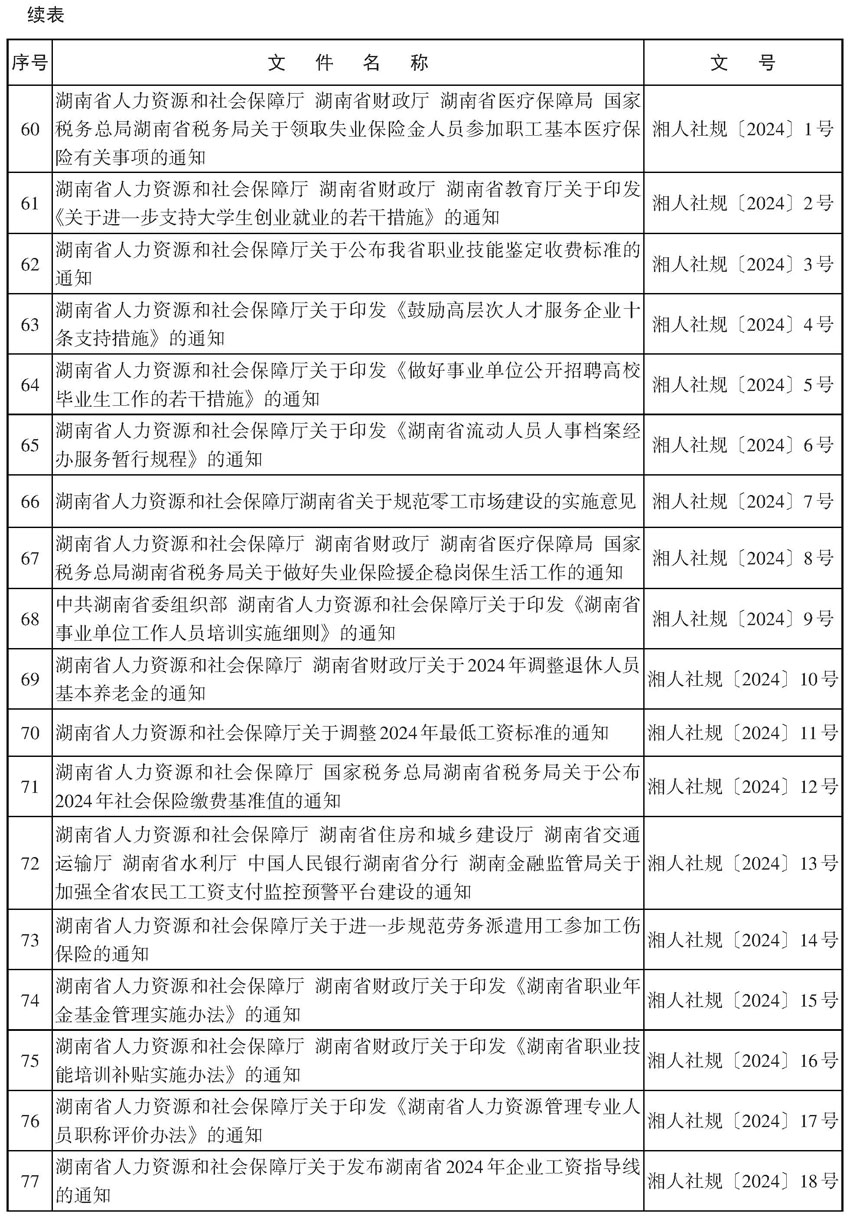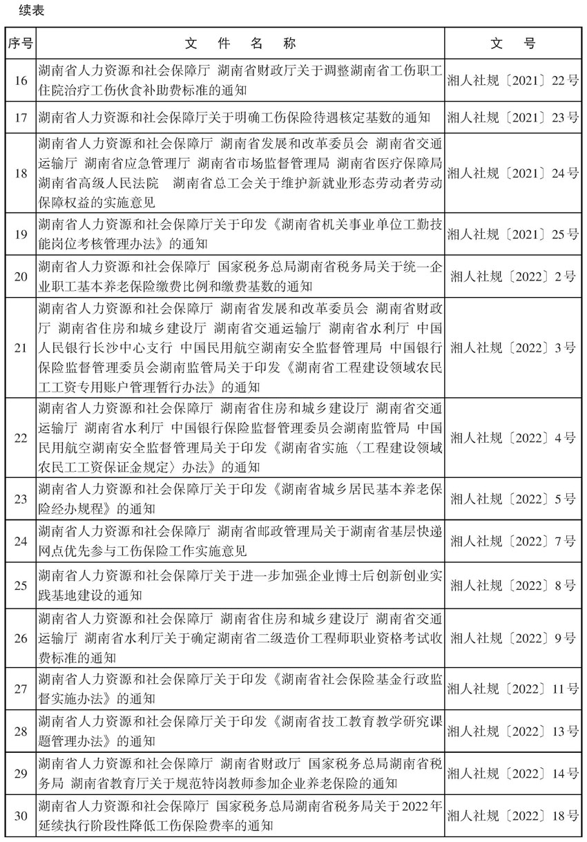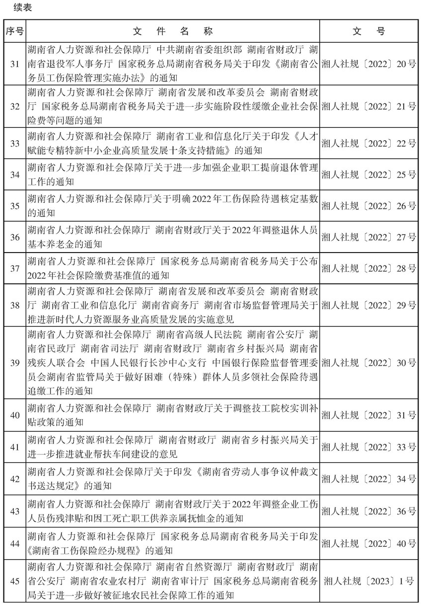 二、重新公布《湖南省勞動和社會保障廳關(guān)于按省人民政府辦公廳湘政辦發(fā)〔2009〕4號文件參保退休人員基本養(yǎng)老金計(jì)發(fā)問題的通知》等56件規(guī)范性文件。