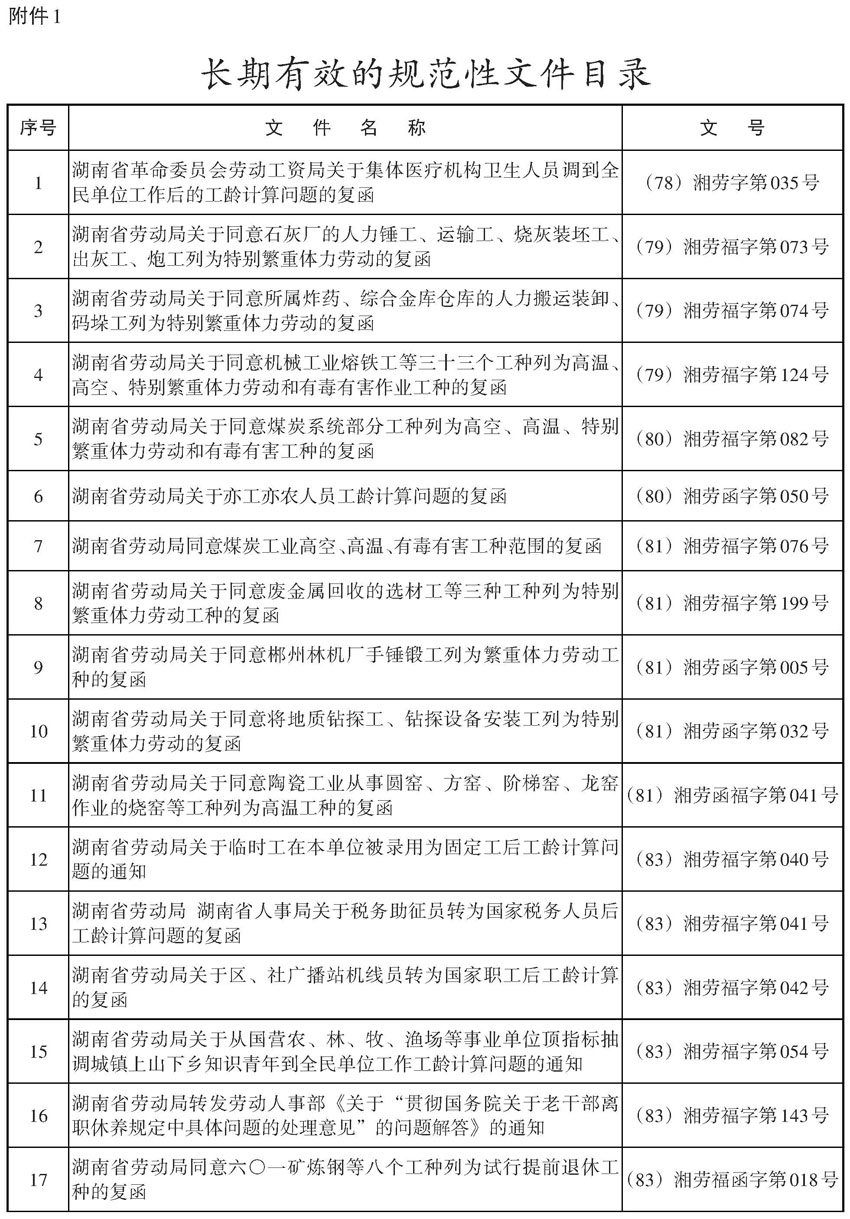 一、《湖南省革命委員會勞動工資局關(guān)于集體醫(yī)療機(jī)構(gòu)衛(wèi)生人員調(diào)到全民單位工作后的工齡計(jì)算問題的復(fù)函》等109件規(guī)范性文件長期有效。