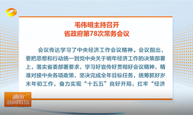 12月14日下午,省長(zhǎng)毛偉明主持召開省政府第78次常務(wù)會(huì)議,傳達(dá)學(xué)習(xí)中央經(jīng)濟(jì)工作會(huì)議精神及習(xí)近平總書記近期重要講話和指示批示精神,研究部署高質(zhì)量發(fā)展綜合督查、2026年省重點(diǎn)建設(shè)項(xiàng)目、立法工作、長(zhǎng)株潭要素市場(chǎng)化配置綜合改革試點(diǎn)、江河湖庫(kù)保護(hù)利用、突發(fā)事件總體...[詳細(xì)內(nèi)容]