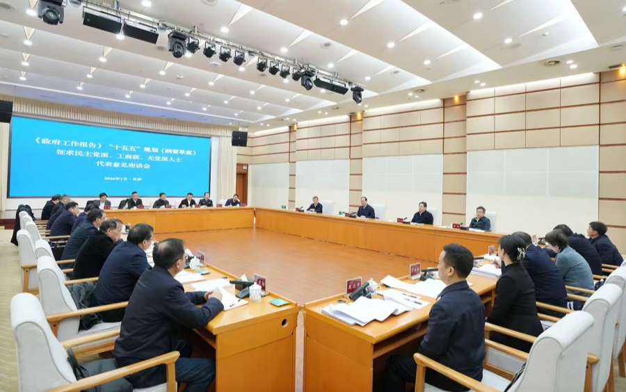 1月5日下午,省政府舉行座談會(huì),征求各民主黨派省委會(huì)、省工商聯(lián)負(fù)責(zé)人和無黨派人士代表對(duì)2026年《政府工作報(bào)告》和省“十五五”規(guī)劃《綱要草案》的意見建議。省委副書記、省長(zhǎng)毛偉明強(qiáng)調(diào),要深入貫徹黨的二十屆四中全會(huì)以及中央經(jīng)濟(jì)工作會(huì)議精神,落實(shí)省委十二屆十次全會(huì)暨省委經(jīng)濟(jì)工作會(huì)議要求,把“湖南所需”與“黨派所長(zhǎng)”結(jié)合起來,進(jìn)一步凝聚人心、服務(wù)中心、提振信心,為“十五五”開局貢獻(xiàn)更多智慧力量。