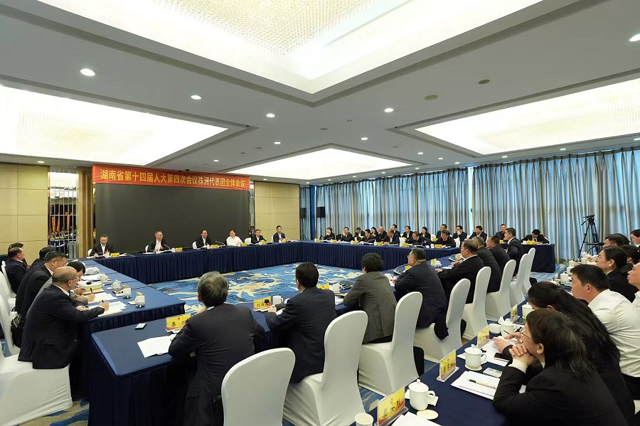 毛偉明在株洲市代表團(tuán)參加審議。