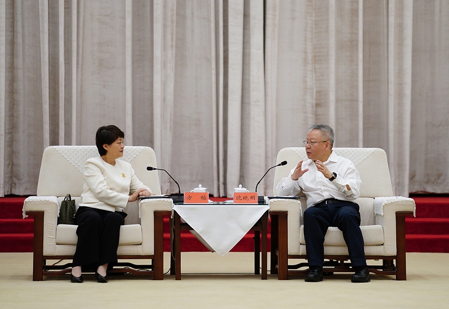 省領(lǐng)導(dǎo)吳桂英、曹志強(qiáng)參加會談。