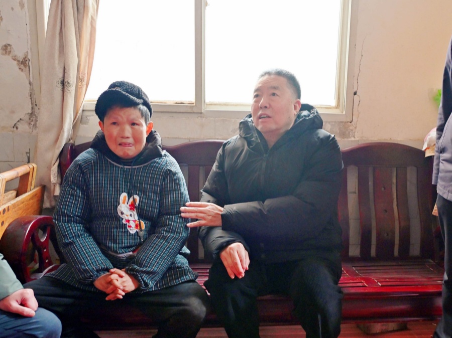 毛萬(wàn)春看望慰問二級(jí)智力殘疾人王暢。