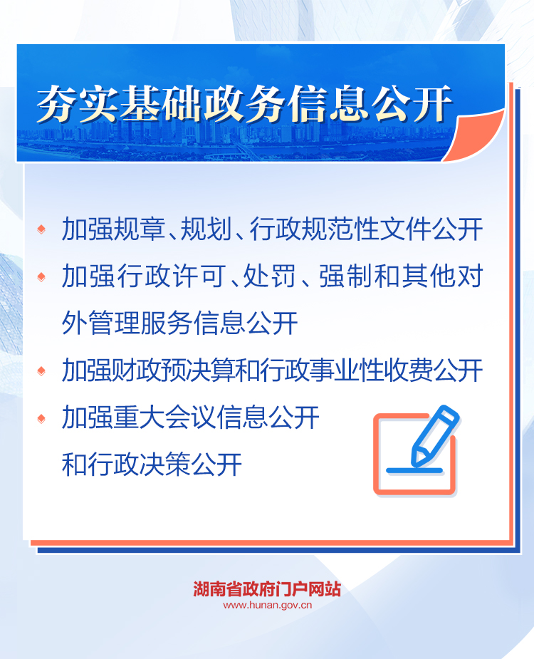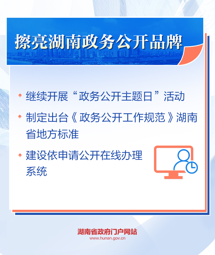 近日,省政府辦公廳印發(fā)了《湖南省2023年政務(wù)公開工作要點》,文件提出緊緊圍繞打好“發(fā)展六仗”,充分發(fā)揮以公開促落實、強監(jiān)管、優(yōu)服務(wù)的職能作用。