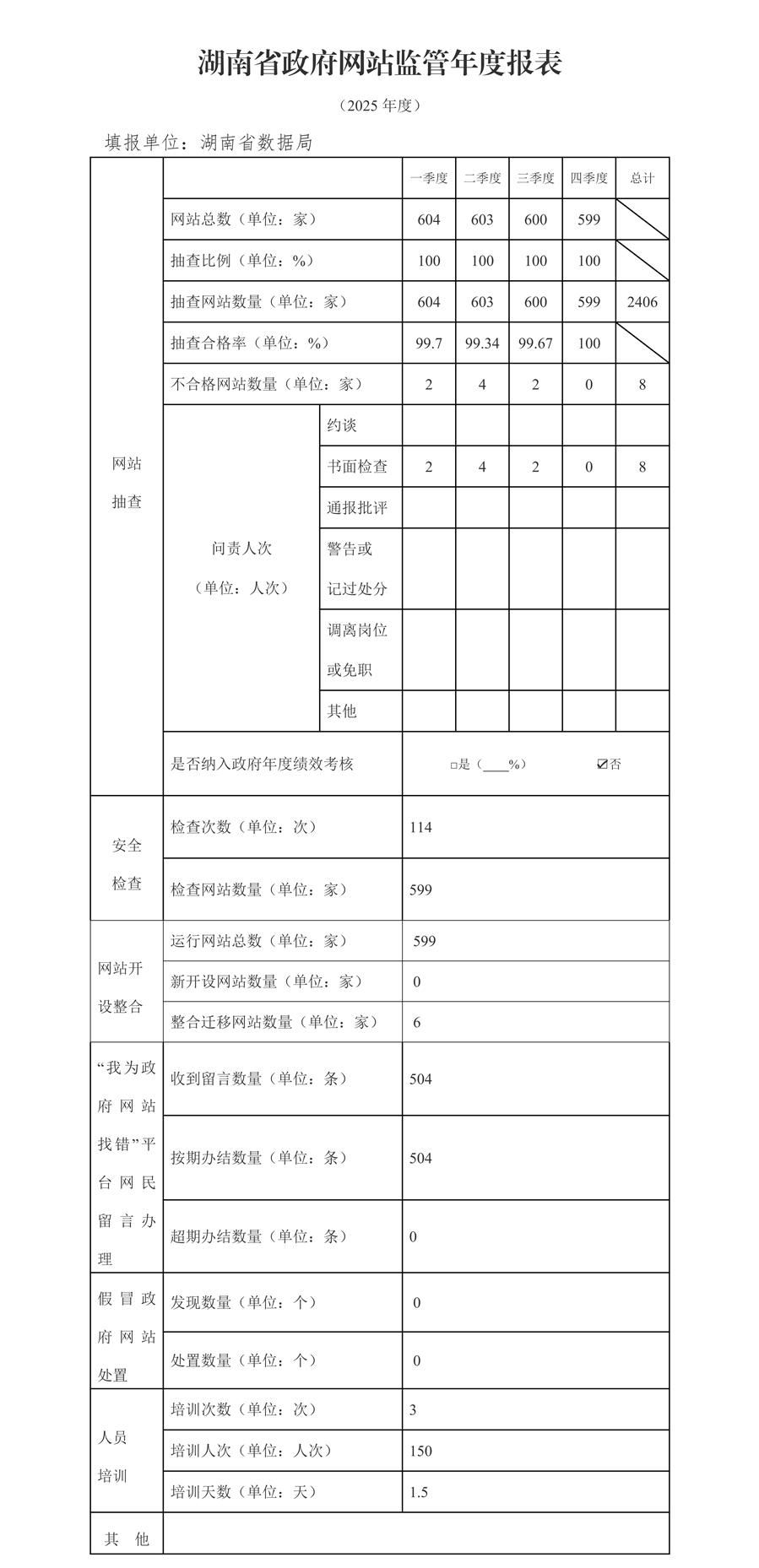 2025年湖南政府網(wǎng)站監(jiān)管年度報表