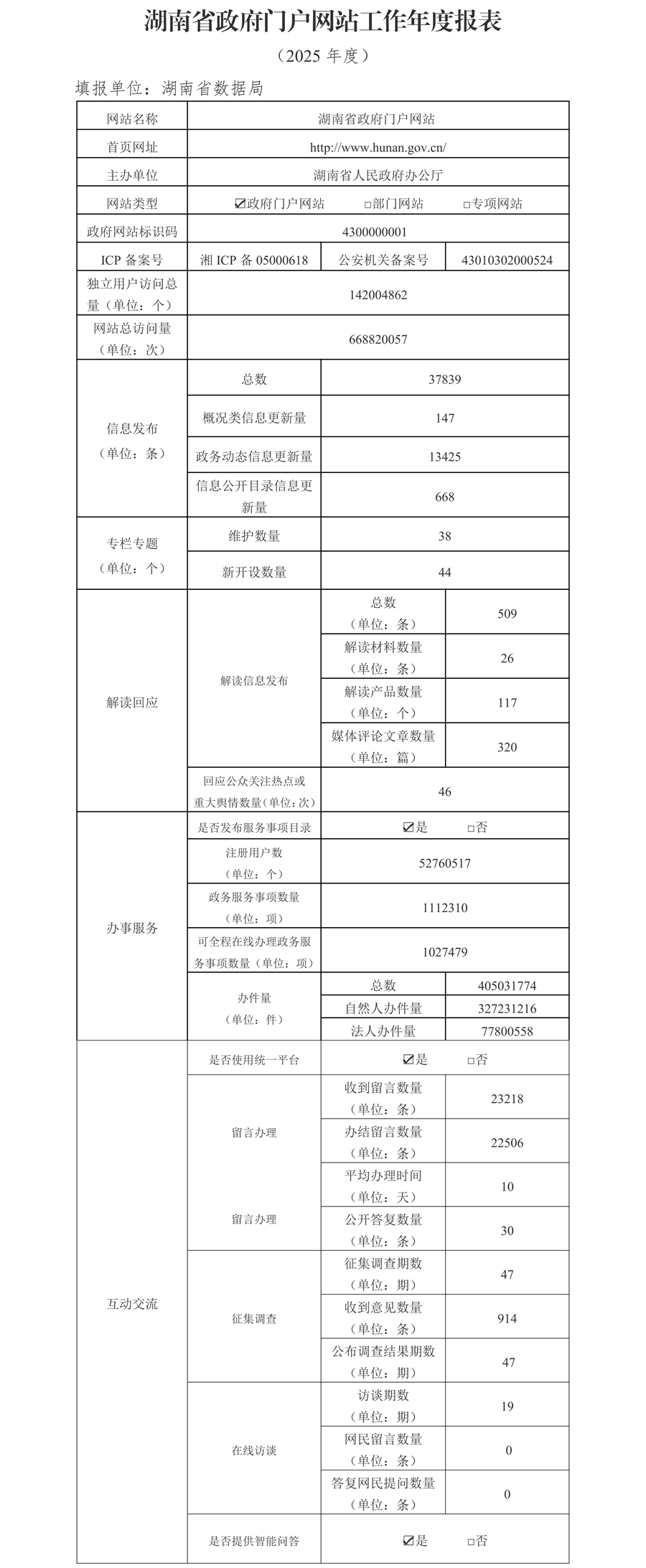 2025年湖南省政府門戶網(wǎng)站工作年度報(bào)表