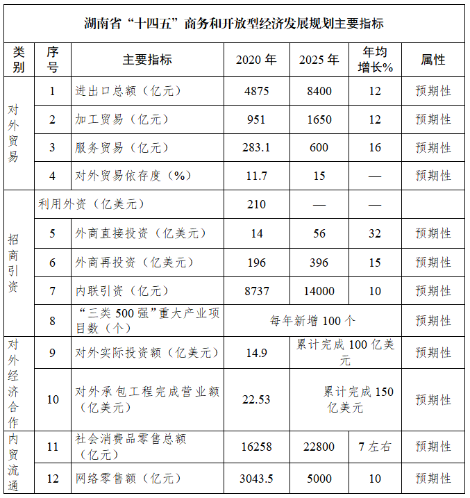 湖南省“十四五”商務(wù)和開(kāi)放型經(jīng)濟(jì)發(fā)展規(guī)劃