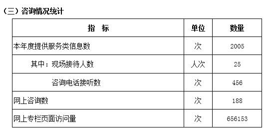 7.依法依規(guī)辦理申請(qǐng)公開(kāi)。結(jié)合統(tǒng)計(jì)工作實(shí)際,進(jìn)一步完善依申請(qǐng)公開(kāi)工作流程,積極推動(dòng)網(wǎng)上辦理依申請(qǐng)公開(kāi),修訂公開(kāi)指南中有關(guān)依申請(qǐng)公開(kāi)的內(nèi)容,認(rèn)真做好依申請(qǐng)公開(kāi)政府統(tǒng)計(jì)信息內(nèi)容的合法性審查,做到及時(shí)接收、依規(guī)辦理、按時(shí)統(tǒng)一規(guī)范答復(fù),提高工作效率。暢通受理渠道,為申請(qǐng)人提供便捷服務(wù),提高答復(fù)工作質(zhì)量。2017年,我局處理依申請(qǐng)公開(kāi)項(xiàng)目12項(xiàng),省長(zhǎng)信箱(公眾問(wèn)答)信件2條,局長(zhǎng)信箱、統(tǒng)計(jì)違法案件舉報(bào)、統(tǒng)計(jì)紀(jì)檢監(jiān)察舉報(bào)來(lái)信23條,咨詢投訴信息163條。