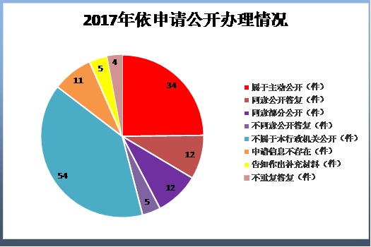 (二)辦理情況。2017年1月1日至12月31日,省食藥監(jiān)局共受理公開政府信息申請125件,依法按程序辦結125件。根據《中華人民共和國政府信息公開條例》相關規(guī)定,在125件答復件中,屬于主動公開的34件,同意公開答復12件,不同意公開答復的5件(申請公開的信息不是《條例》所指的政府信息),不屬于本行政機關公開的54件,申請信息不存在的11件,告知作出補充材料的5件,不重復答復4件。按照申請人要求的形式回復分析,信函回復39件,網絡郵件回復32件,信函和網絡郵件同時回復52件,自行領取2件,分別占依申請公開總量31.2%、25.6%、41.6%、1.6%。