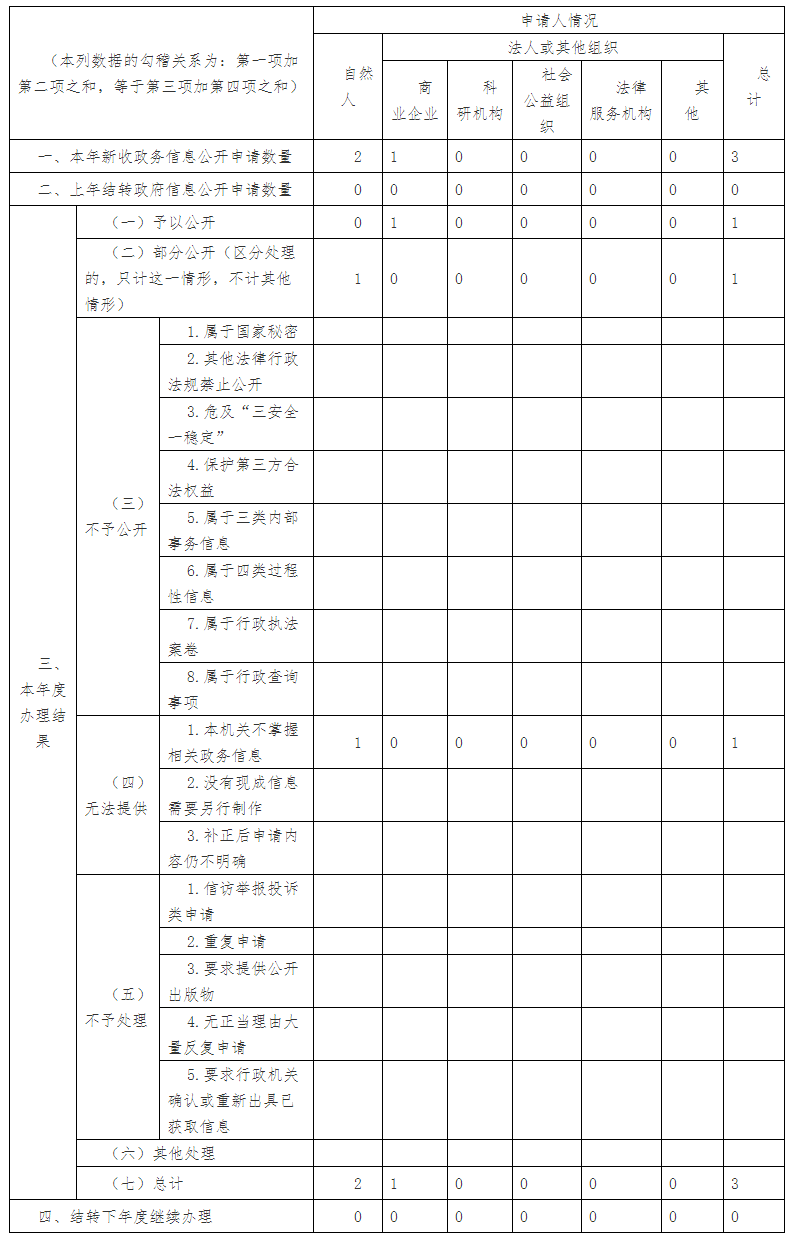 規(guī)范依申請(qǐng)公開工作機(jī)制,全年共收到和處理信息公開申請(qǐng)3件,全部按規(guī)定及時(shí)回復(fù)。