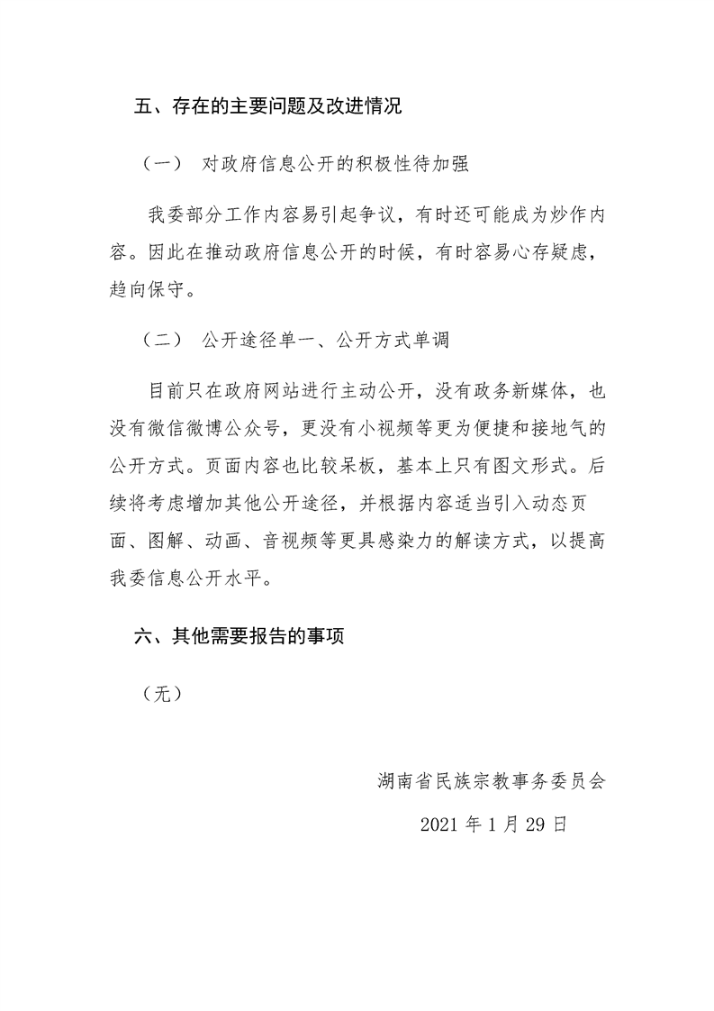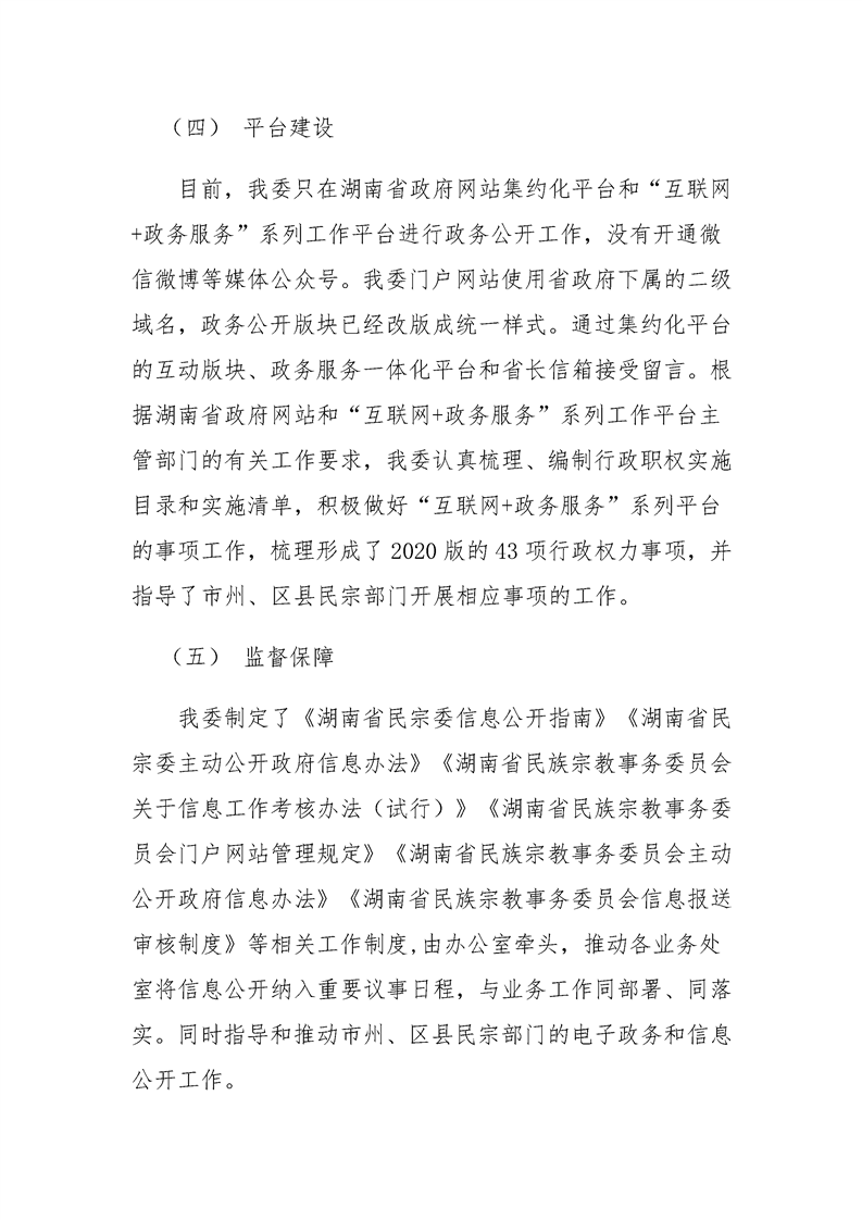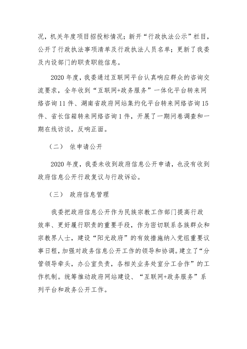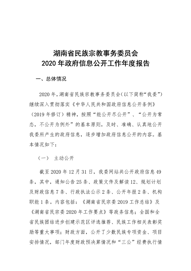 湖南省民族宗教事務(wù)委員會2020年政府信息公開工作年度報(bào)告