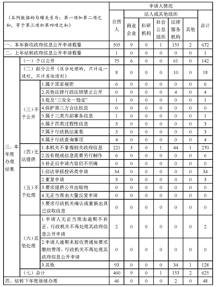 (二)依申請公開情況。建立完善“湖南省政府信息依申請公開辦理平臺”,便利社會公眾向省政府(辦公廳)申請公開政府信息。2024年收到政府信息公開申請672件,結(jié)轉(zhuǎn)上年度政府信息公開申請1件,共辦理完成625件,結(jié)轉(zhuǎn)下年度繼續(xù)辦理48件;發(fā)生行政復(fù)議10件、行政訴訟1件。