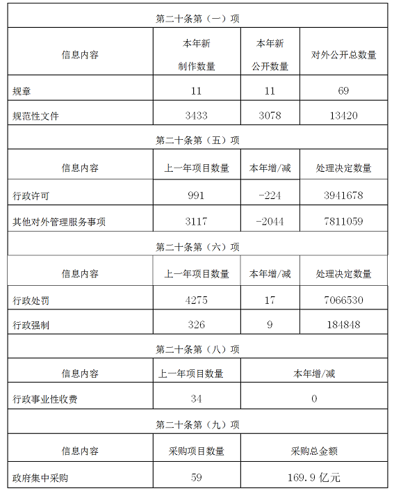 (一)主動公開法定政府信息。一年來,全省各級各部門嚴格對照條例第二十條規(guī)定,積極主動公開了15項法定政府信息,在此基礎上,根據(jù)條例第二十一條規(guī)定,設區(qū)的市級、縣級人民政府及其部門結(jié)合本地實際,還公開了涉及市政建設、公共服務、公益事業(yè)等7個方面的政府信息,鄉(xiāng)鎮(zhèn)人民政府還公開了貫徹落實農(nóng)業(yè)農(nóng)村政策、籌資酬勞、社會救助等8個方面的政府信息。省政府分類設計了規(guī)劃及相關政策、行政審批服務、重大建設項目、脫貧攻堅、教育、基本醫(yī)療衛(wèi)生、社會保障、就業(yè)創(chuàng)業(yè)、環(huán)境保護、安全生產(chǎn)、食品藥品安全等19個重點領域,運用文件、數(shù)據(jù)、表格等方式,對“干貨”信息集成式、全生態(tài)公開,確保主動公開內(nèi)容聚焦條例規(guī)定;公開了33次省政府常務會議、9件省政府規(guī)章、72件規(guī)范性文件,全年“省政府會議”欄目點擊量達11134.9萬次,文件庫點擊量達1154.9萬次。湘潭市全年公開行政許可信息55560條,行政處罰信息2047條,抽查檢查信息5075條。長沙市每月公開上月全市財政收支情況,對收支主要數(shù)據(jù)及增減變化情況進行分析說明,全年公開財政信息3163條。