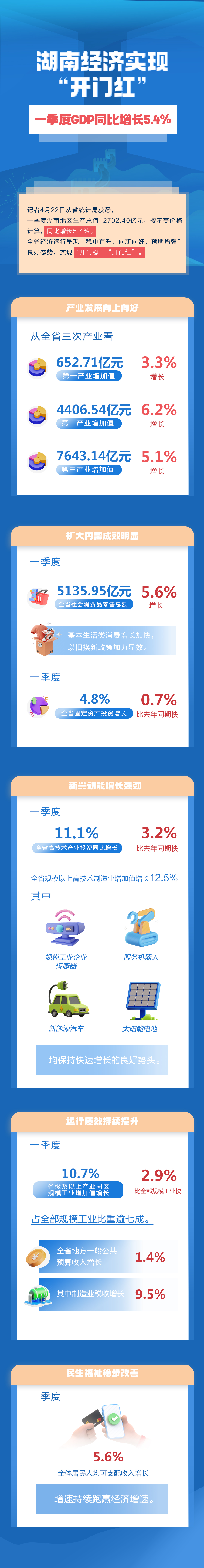 湖南經(jīng)濟(jì)實現(xiàn)“開門紅” 一季度GDP同比增長5.4%