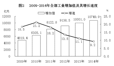表1 2014年規(guī)模以上工業(yè)主要產(chǎn)品產(chǎn)量及其增長速度 |