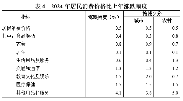 全省居民消費價格比上年上漲0.5%。其中,城市上漲0.5%,農(nóng)村上漲0.5%。工業(yè)生產(chǎn)者出廠價格下降0.7%,工業(yè)生產(chǎn)者購進價格下降2.4%。農(nóng)產(chǎn)品生產(chǎn)者價格上漲3.3%。