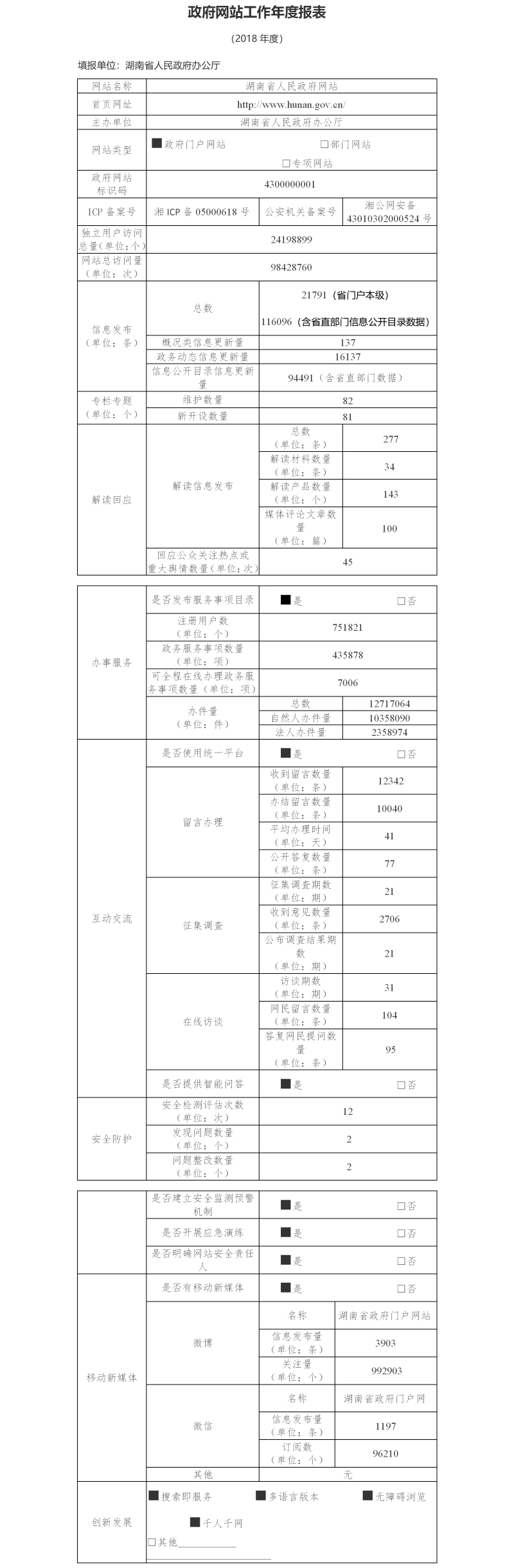 2018湖南省政府網(wǎng)站工作年度報(bào)表