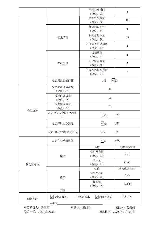 2019年湖南省應急管理廳網(wǎng)站工作年度報表