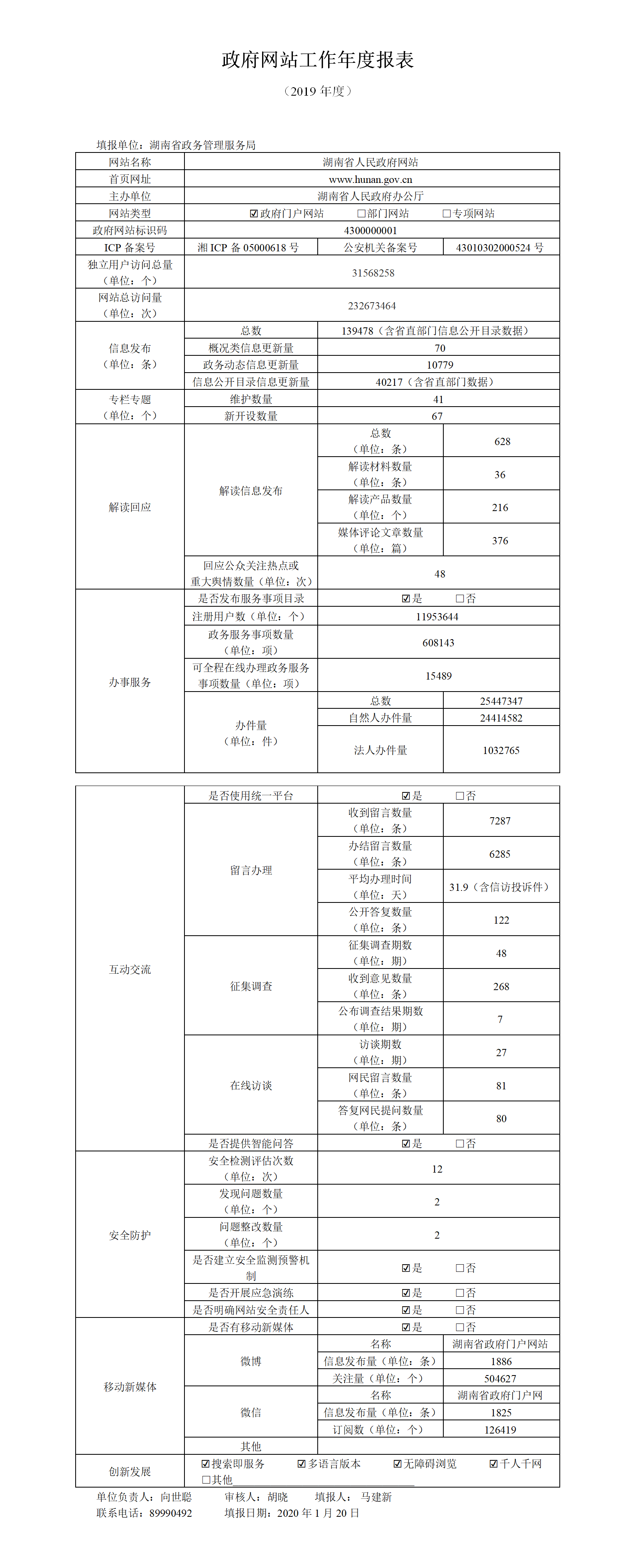 2019湖南省政府網(wǎng)站工作年度報(bào)表
