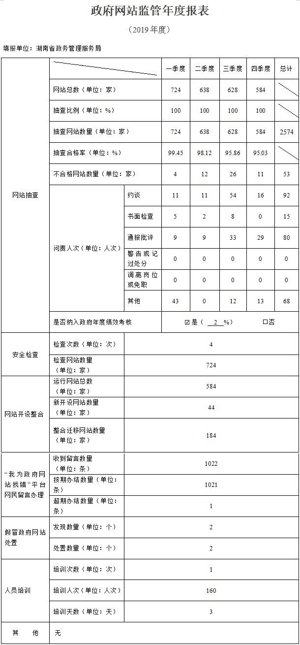 2019年湖南政府網(wǎng)站監(jiān)管年度報表