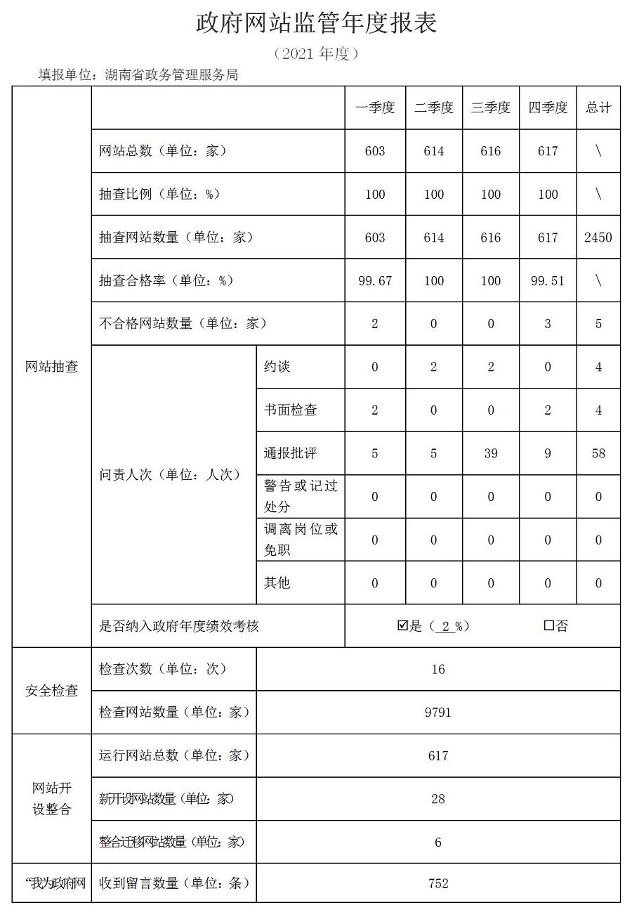 2021年湖南政府網(wǎng)站監(jiān)管年度報(bào)表