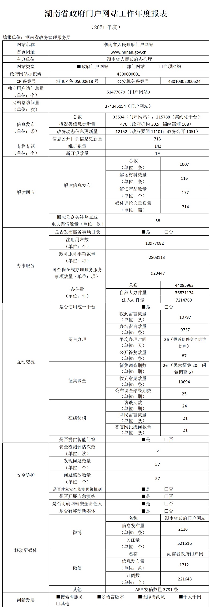 2021年湖南省政府門戶網(wǎng)站工作年度報表
