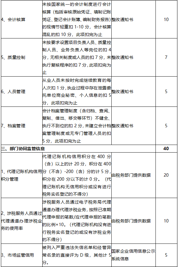 (三)部門協(xié)同監(jiān)管信息:稅務(wù)部門、市場監(jiān)管部門、發(fā)展改革部門對代理記賬機構(gòu)信用評價信息。