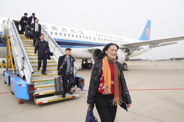 3日下午,隨著南航CZ5263次航班在北京首都機場緩緩降落,出席全國政協(xié)十四屆三次會議的部分住湘全國政協(xié)委員抵達首都北京。湖南日報全媒體記者 辜鵬博 攝