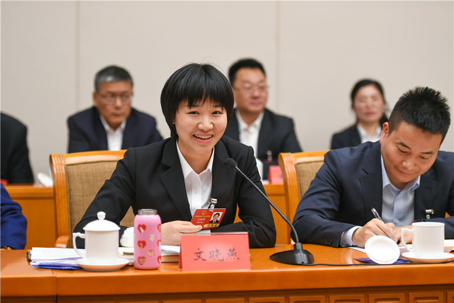 3月7日,文曉燕代表在湖南代表團(tuán)分組會(huì)議上發(fā)言。 湖南日?qǐng)?bào)全媒體記者 傅聰 攝