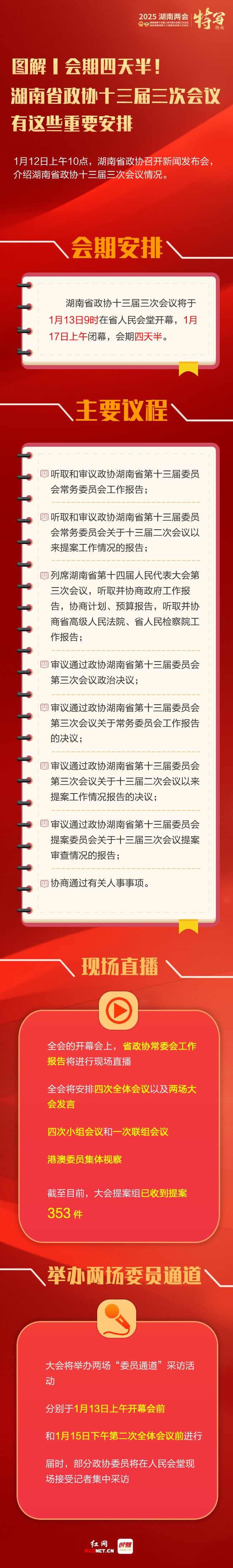 圖解丨會期四天半!湖南省政協(xié)十三屆三次會議有這些重要安排