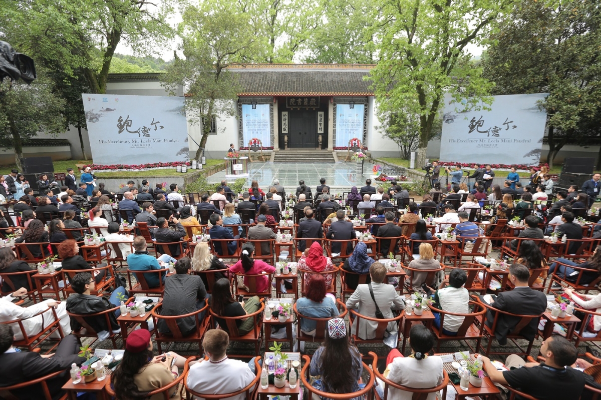 岳麓書(shū)院位于長(zhǎng)沙市岳麓山風(fēng)景區(qū),是中國(guó)古代著名的“四大書(shū)院”之一,有“千年學(xué)府”之譽(yù),培育了大批有影響的歷史文化名人。圖為“‘一帶一路’青年創(chuàng)意與遺產(chǎn)論壇”開(kāi)幕式在岳麓書(shū)院舉辦。