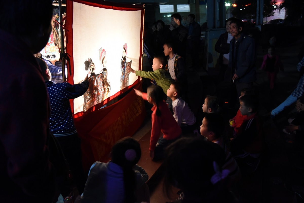 影子戲又稱皮影戲,燈影戲,薈萃了剪紙、繪畫、雕刻、地方戲、口技等藝術(shù)精華,被譽(yù)為中國(guó)傳統(tǒng)文化的“活化石”,也是目前衡陽(yáng)市唯一被列入《人類非物質(zhì)文化遺產(chǎn)代表作名錄》非物質(zhì)文化遺產(chǎn),為衡山廣大群眾喜聞樂見。此圖于夜色深深時(shí)刻拍攝衡山民間藝人演出《誰(shuí)是大英雄》,一群老少圍攏在一起,民間藝人以唱故事這種“貫輸式”藝術(shù)方式,讓人們特別是小朋友于潛移默化的感染中受到熏陶教育和啟迪,在影子戲漸行漸遠(yuǎn)而電影、電視、電腦普及時(shí)代,衡山影子戲卻能夠生命煥發(fā),延綿不絕,表明越是民族的、越是古老的,就越有特色,越屬于世界。