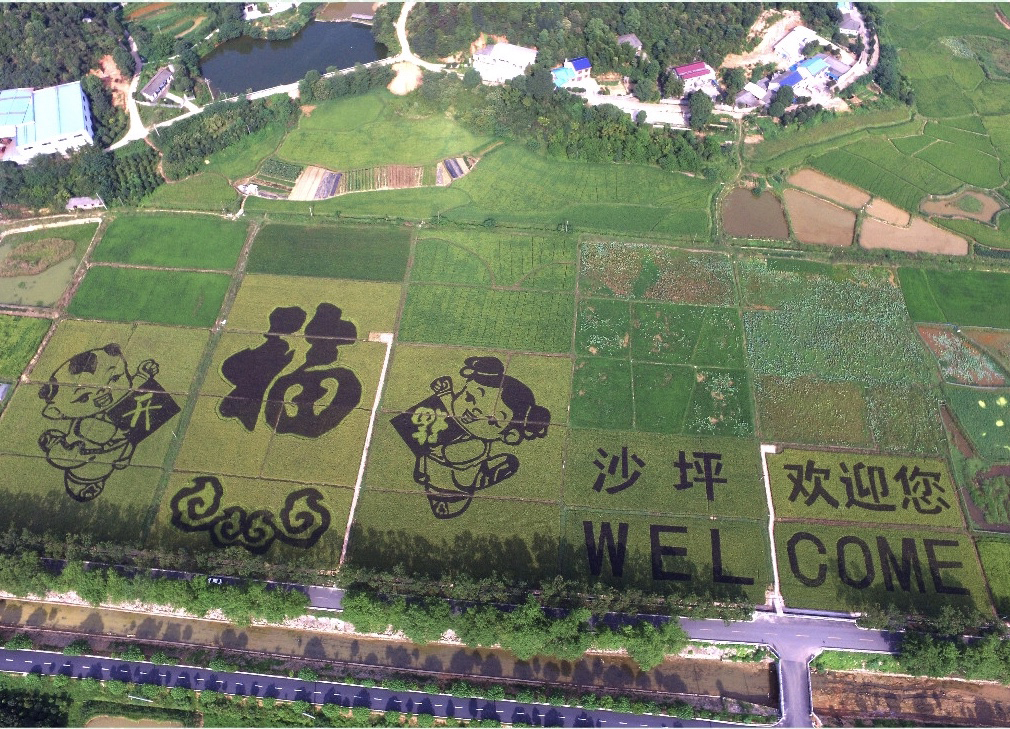 以“開(kāi)”為繡框、以 “�!睘槔C片,用水到種植予以福稻(到),福字中設(shè)有游道,讓游客能欣然進(jìn)入福地,身在福中,設(shè)下美麗的倩影,每個(gè)人都是福中之人。