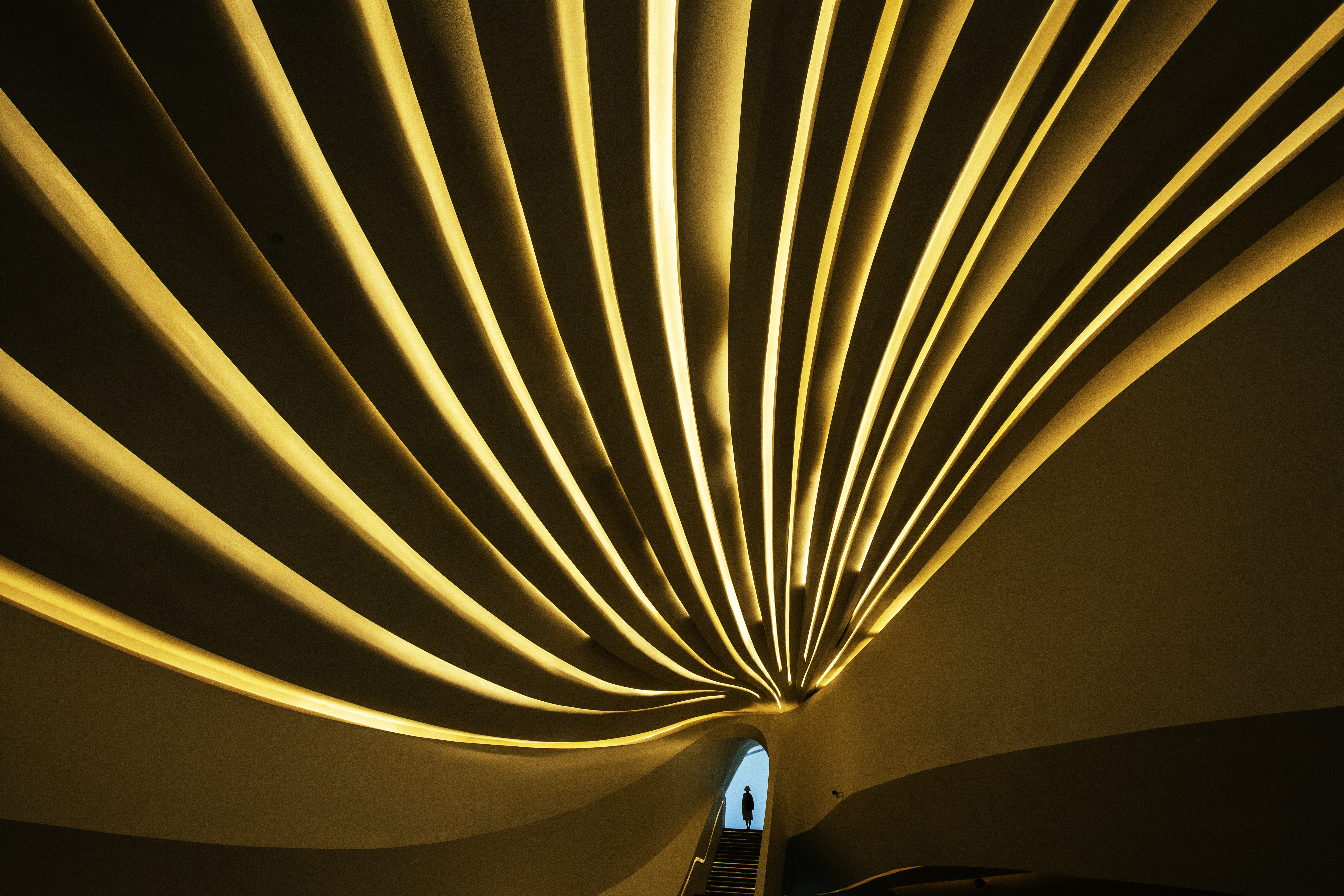 長(zhǎng)沙市梅溪湖國(guó)際文化藝術(shù)中心大劇場(chǎng),充滿魅力的光影造型,動(dòng)感十足,給人美的享受。