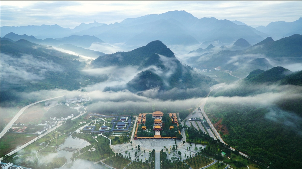 九嶷山巔的云雨是《舜陵瀟湘夜雨》中“永州陰嶺秀,舜廟九嶷蒼;浩蕩千山峻,妖嬈萬水長(zhǎng)”的美妙詩(shī)句,舜帝陵上的煙云是《七律˙答友人》里“九嶷山上白云飛,帝子乘風(fēng)下翠微”的動(dòng)人詩(shī)篇。舜陵煙雨,是一場(chǎng)從天而降、綿延千年的甘霖,洗去九嶷圣山的百代鉛塵,托出舜德文明的萬道霞光。圖為煙雨洗禮之下的九嶷山舜帝陵及碑林。