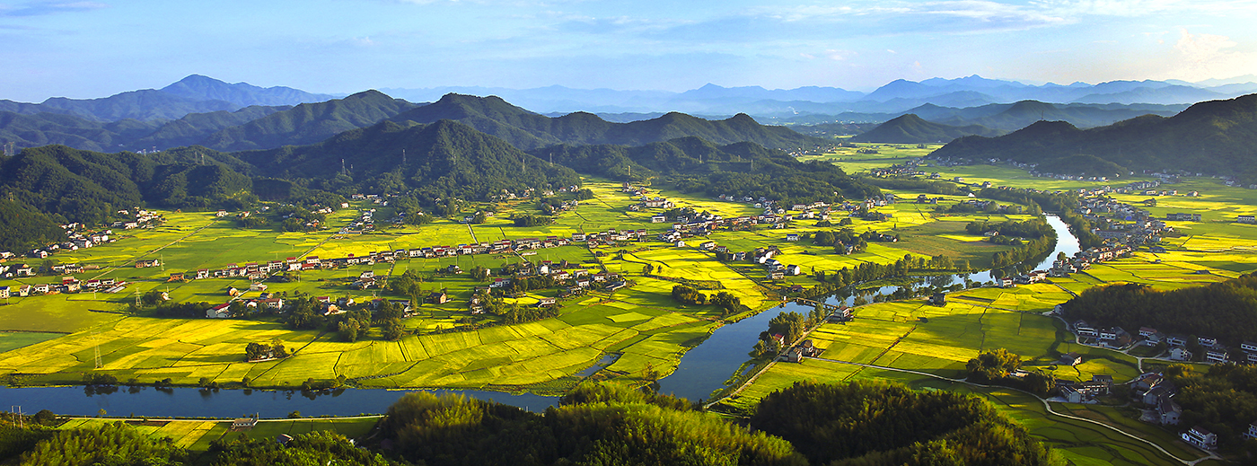 初春的桃花江畔,黃綠相間的農(nóng)田與星星點點的村落形成了一幅美麗的鄉(xiāng)村畫卷。