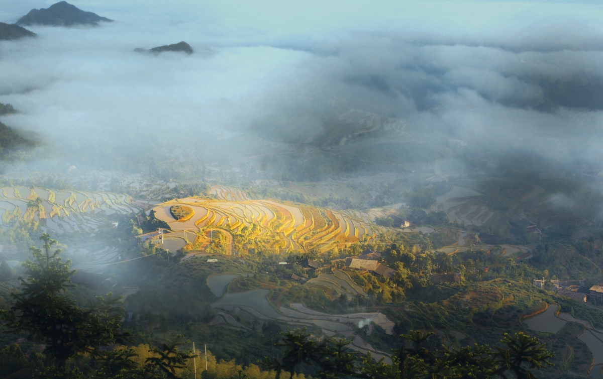 圖片拍攝的是隆回縣虎形山瑤族鄉(xiāng)草原村梯田景色,多年農(nóng)耕,依山造田,不覺間,天成仙境。更是春光旖旎,晨霧飄渺,讓人醉心田園風光之美。