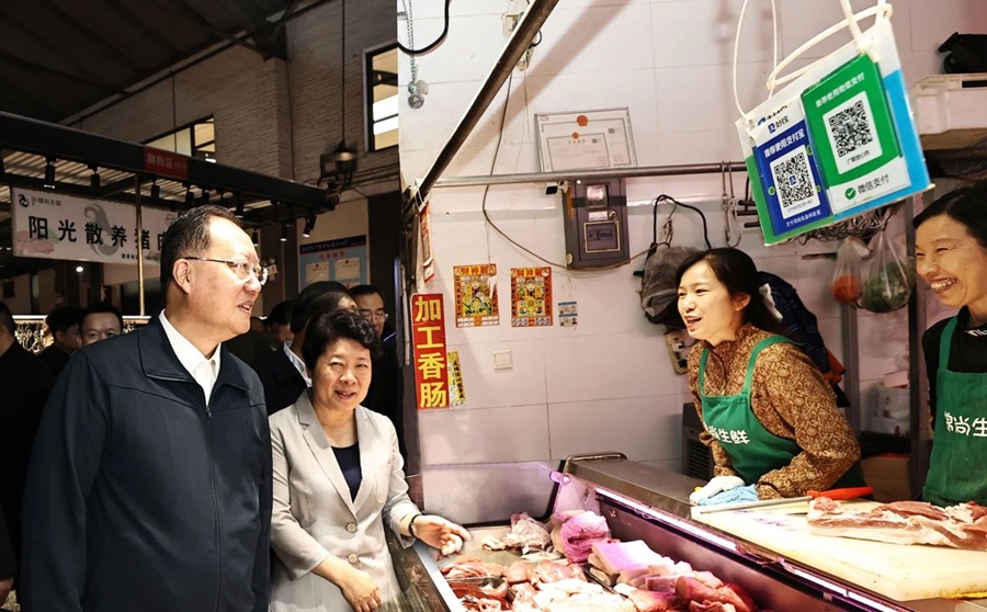 錦尚生鮮市場是長沙市最大的零售農(nóng)貿(mào)市場,占地面積近1.5萬平方米,擁有380多個攤位,新鮮蔬菜、應(yīng)季水果、海鮮水產(chǎn)等一應(yīng)俱全?!笆卟藘r格還穩(wěn)定嗎?”“豬肉是從哪兒進貨?”毛偉明來到熟食、蔬菜、豬肉等多個攤位前,與忙碌的攤主和顧客親切交流,并參觀食品安全快檢室,詳細詢問貨源渠道、銷量價格、質(zhì)量檢測等情況。毛偉明強調(diào),要加強節(jié)日熱銷食品、大宗食品和重點領(lǐng)域監(jiān)管,健全完善從“田間地頭”到“百姓餐桌”的全過程食品安全追溯體系,進一步規(guī)范生產(chǎn)經(jīng)營行為,營造安全放心的食品消費環(huán)境,確保節(jié)日期間“米袋子”“菜籃子”“果盤子”質(zhì)優(yōu)量足價穩(wěn),守護好群眾“舌尖上的安全”。