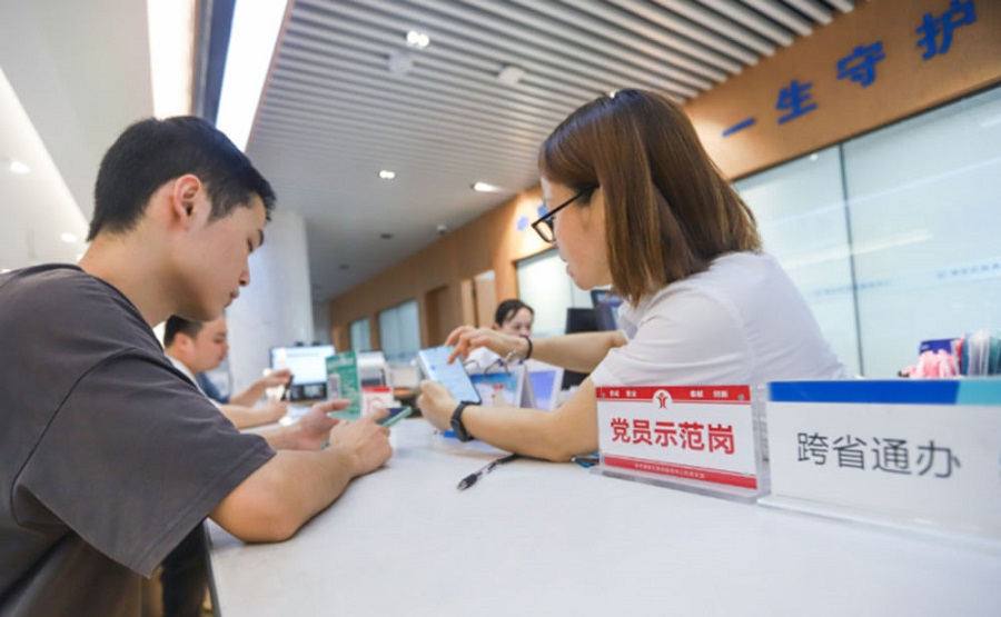 6月28日,在江西省萍鄉(xiāng)市湘東區(qū)政務(wù)服務(wù)中心醫(yī)保服務(wù)區(qū),工作人員正指導(dǎo)群眾辦理異地就醫(yī)備案登記業(yè)務(wù)。新華社發(fā)