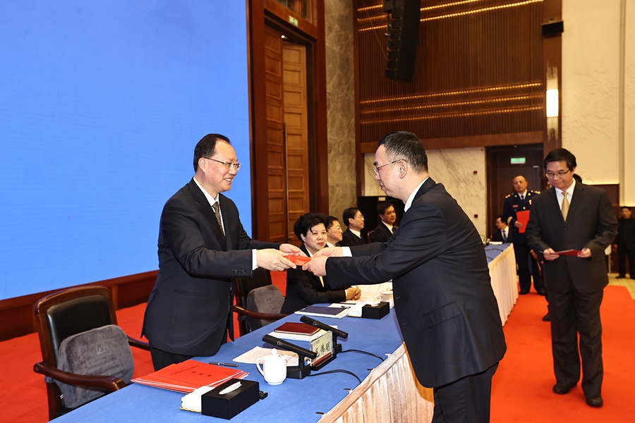 14位市州長和10名省直單位負(fù)責(zé)同志向毛偉明遞交責(zé)任狀。